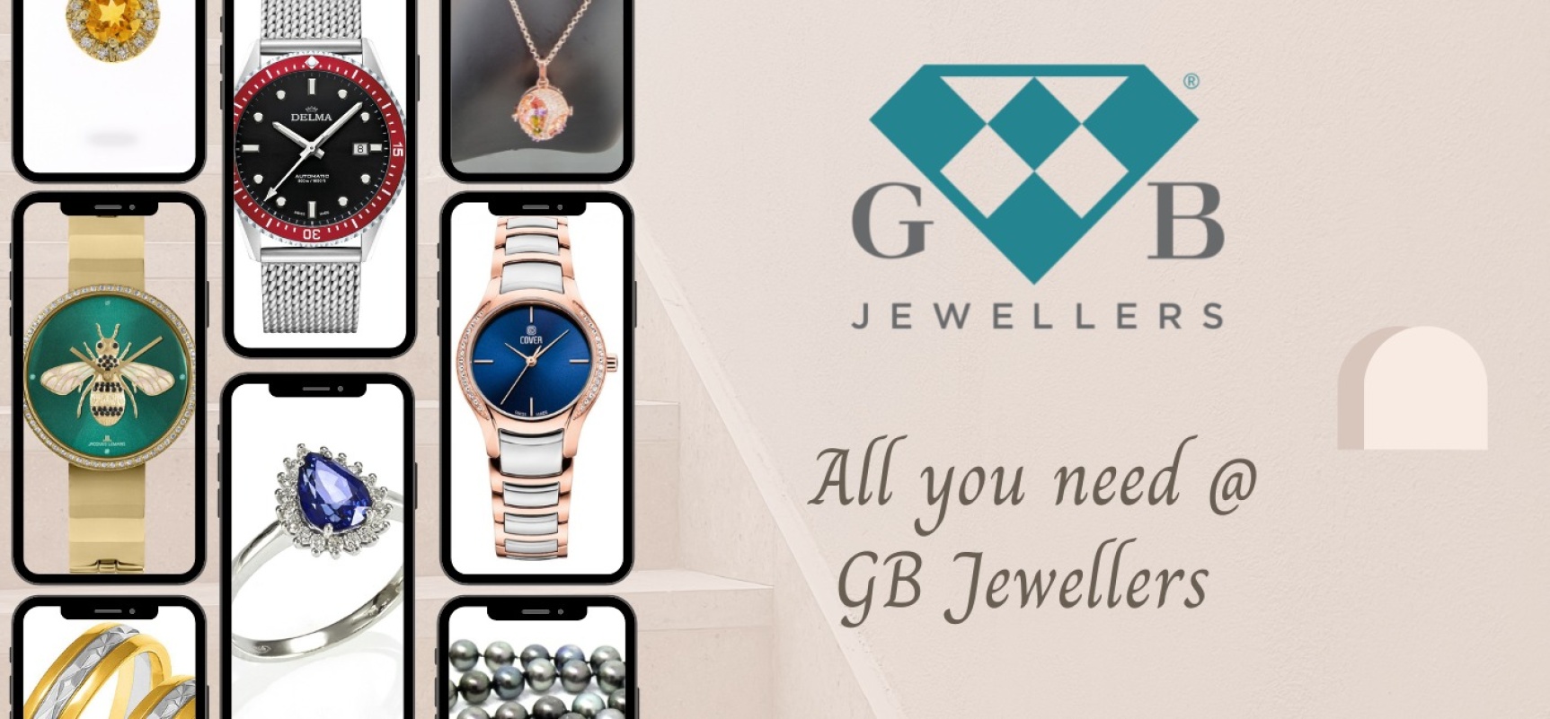 GB Jewellers, a third-generation jewellery and watch business, offers a comprehensive range of jewellery in silver, gold, pearls, and diamonds.